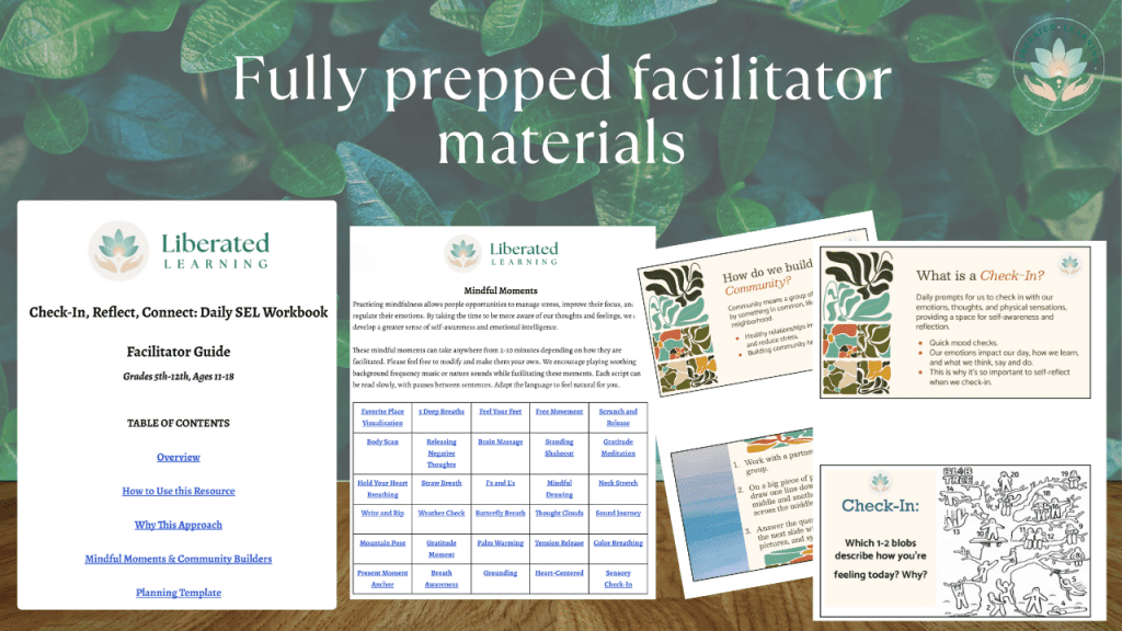 Facilitator GuideImplementation guidance with mindful moment and community-builder directions, plus planning templates.